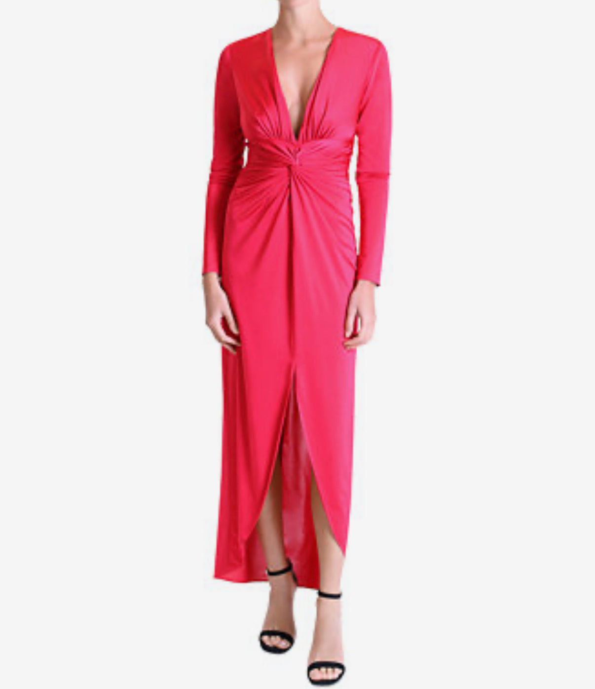 long sleeved silky dress, plunge V neck