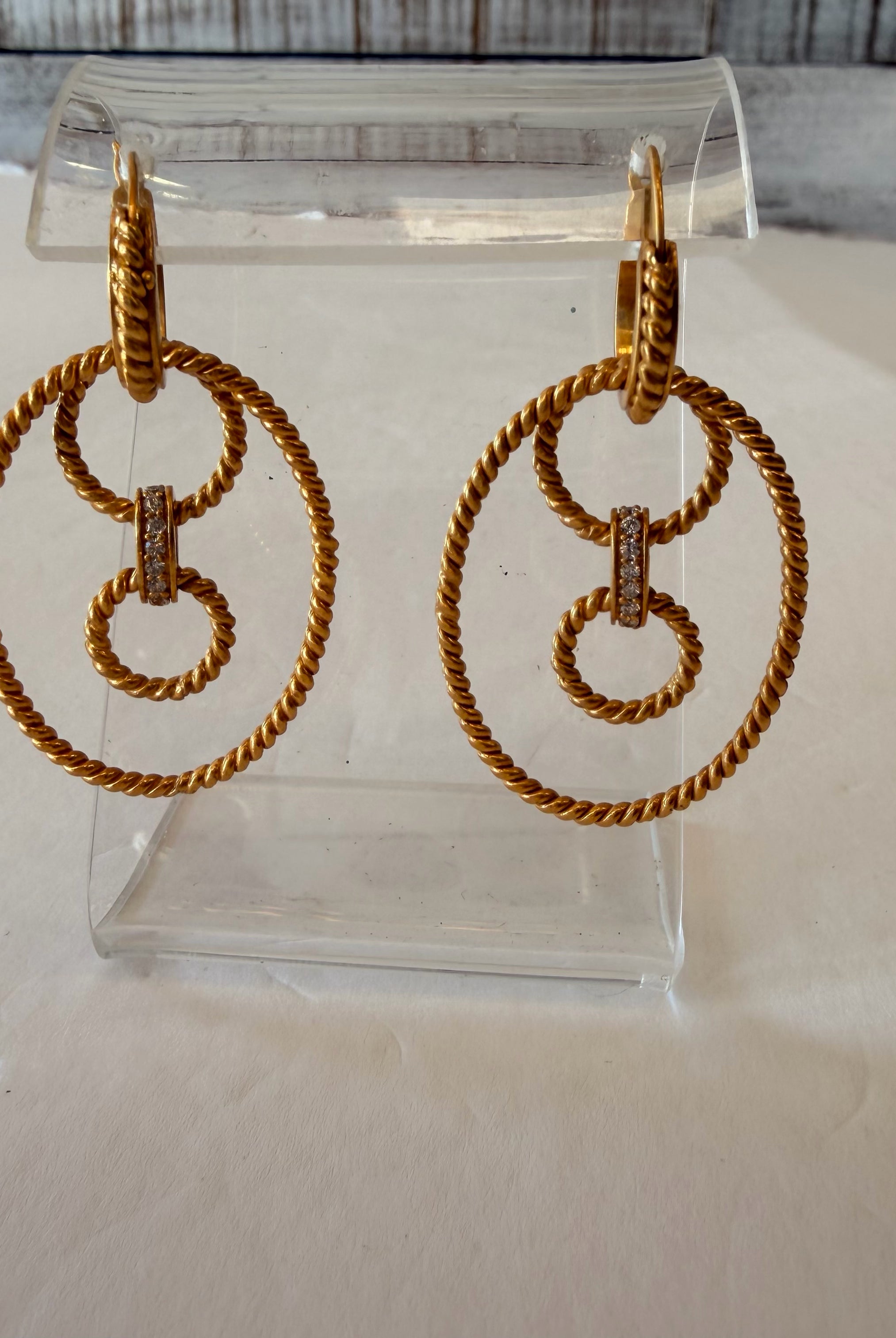 Statement pieces of jewelry are our specialty. Earrings, Bracelets, Bangles, Cuff Bracelet, Necklace, Ring, Watches, and Choker. From Designer brands as well as artsy or fine jewelry, we carry gold, sterling silver and pearls. Costume jewelry as well from art fairs and boutiques. But large and bold statement pieces are our best sellers.