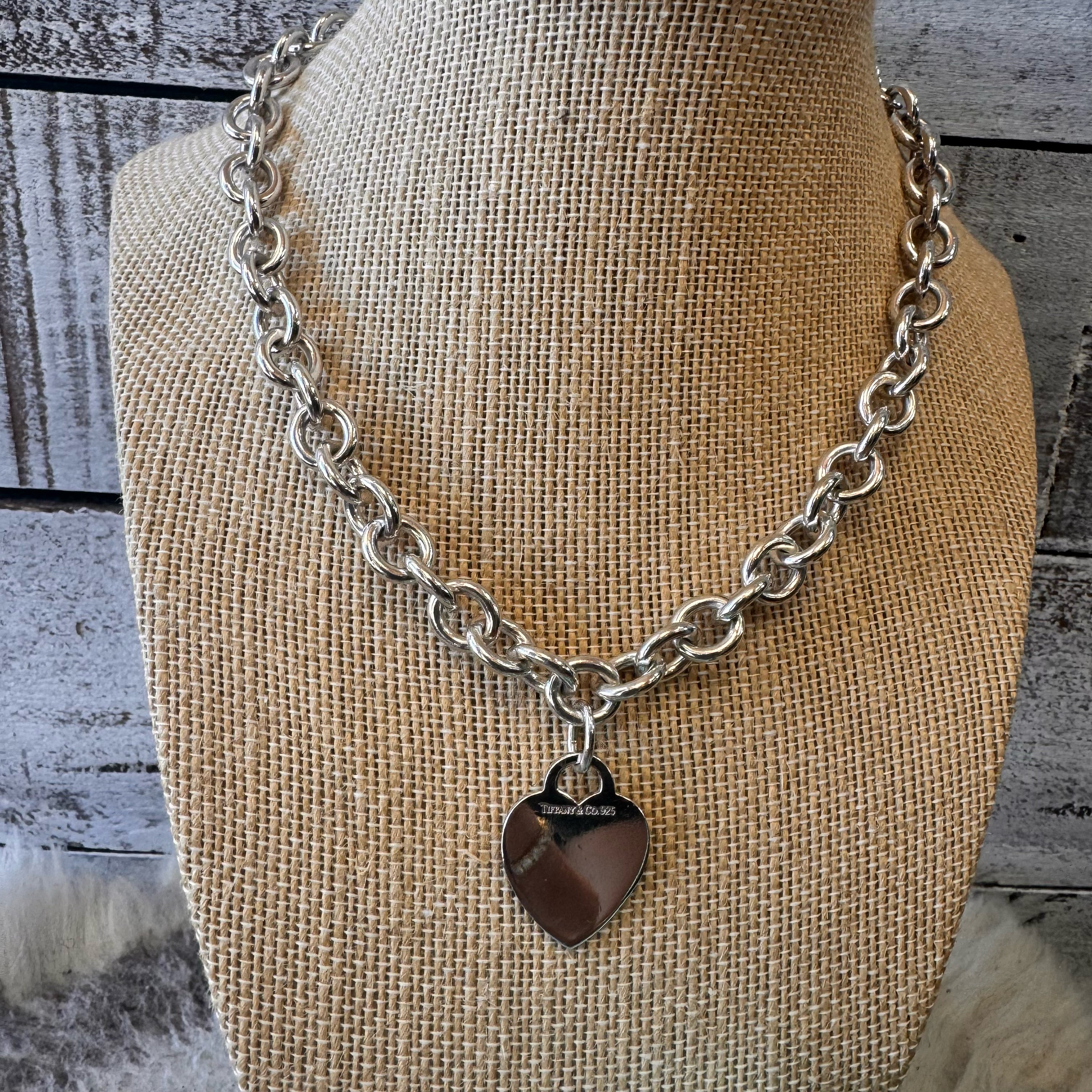 16 inch Sterling Silver Heart Tag Chain necklace