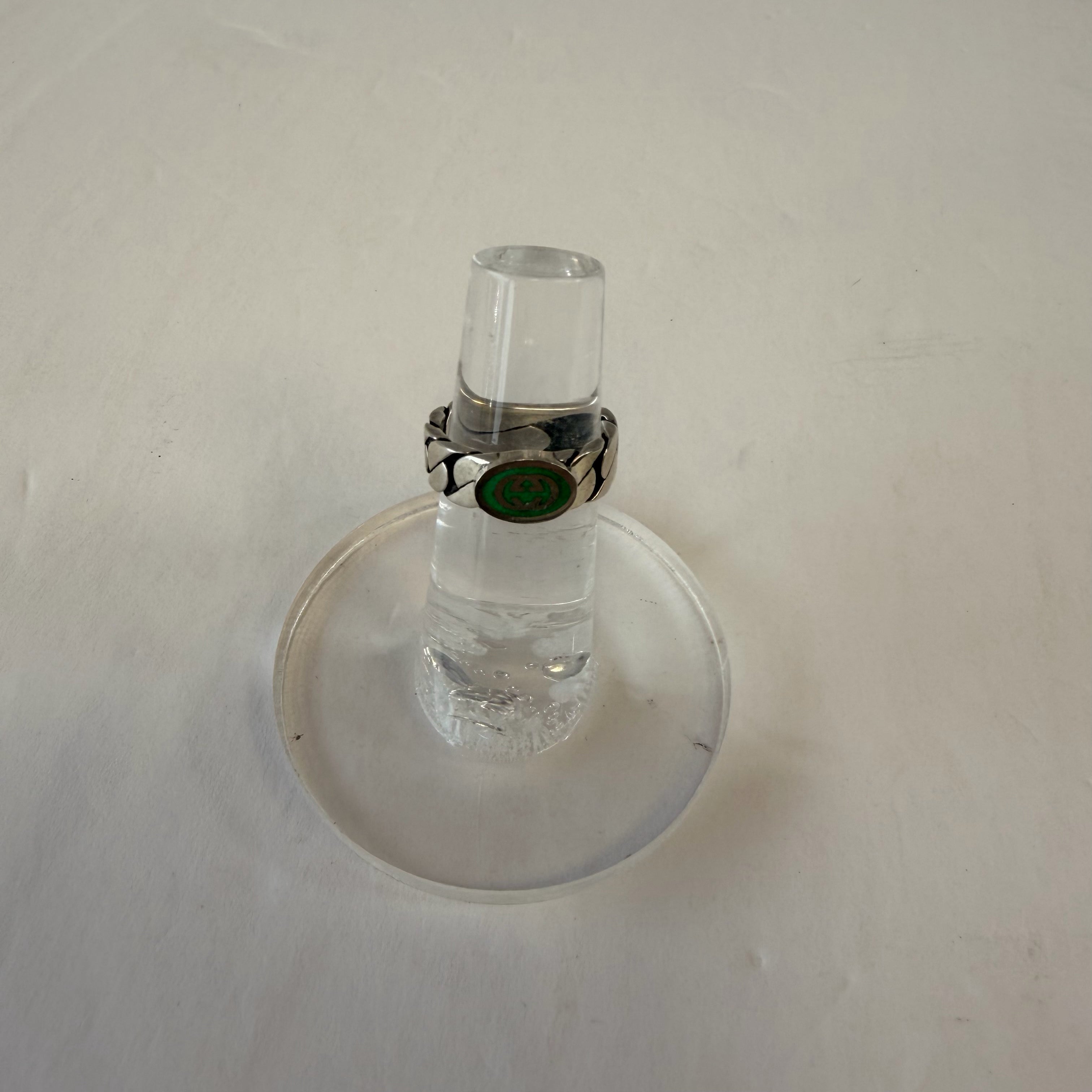 size 5 sterling interlocking GG curb chain with green enamel inlay