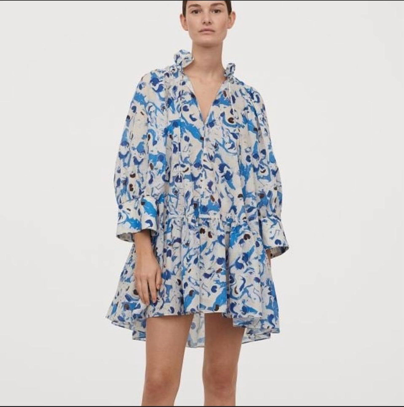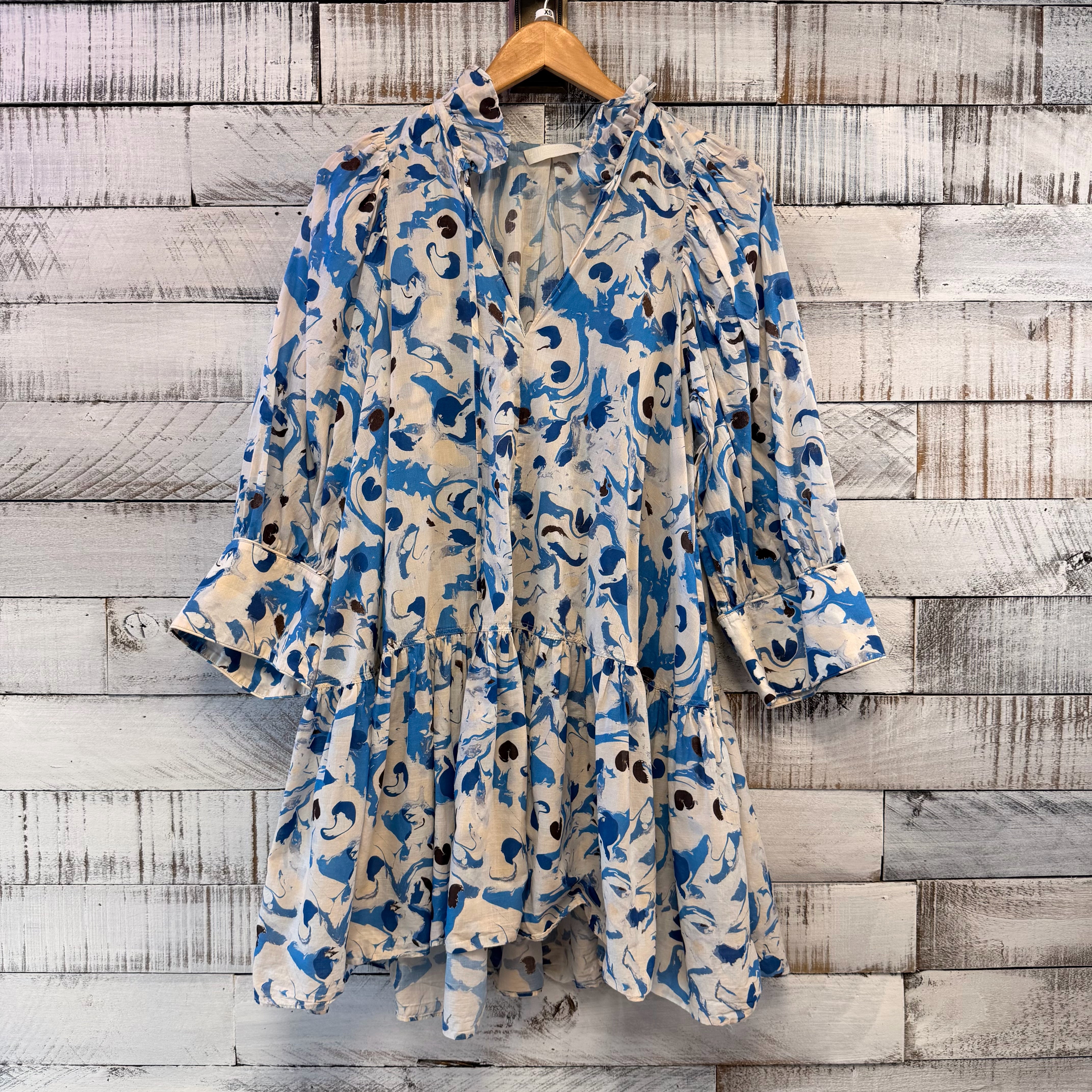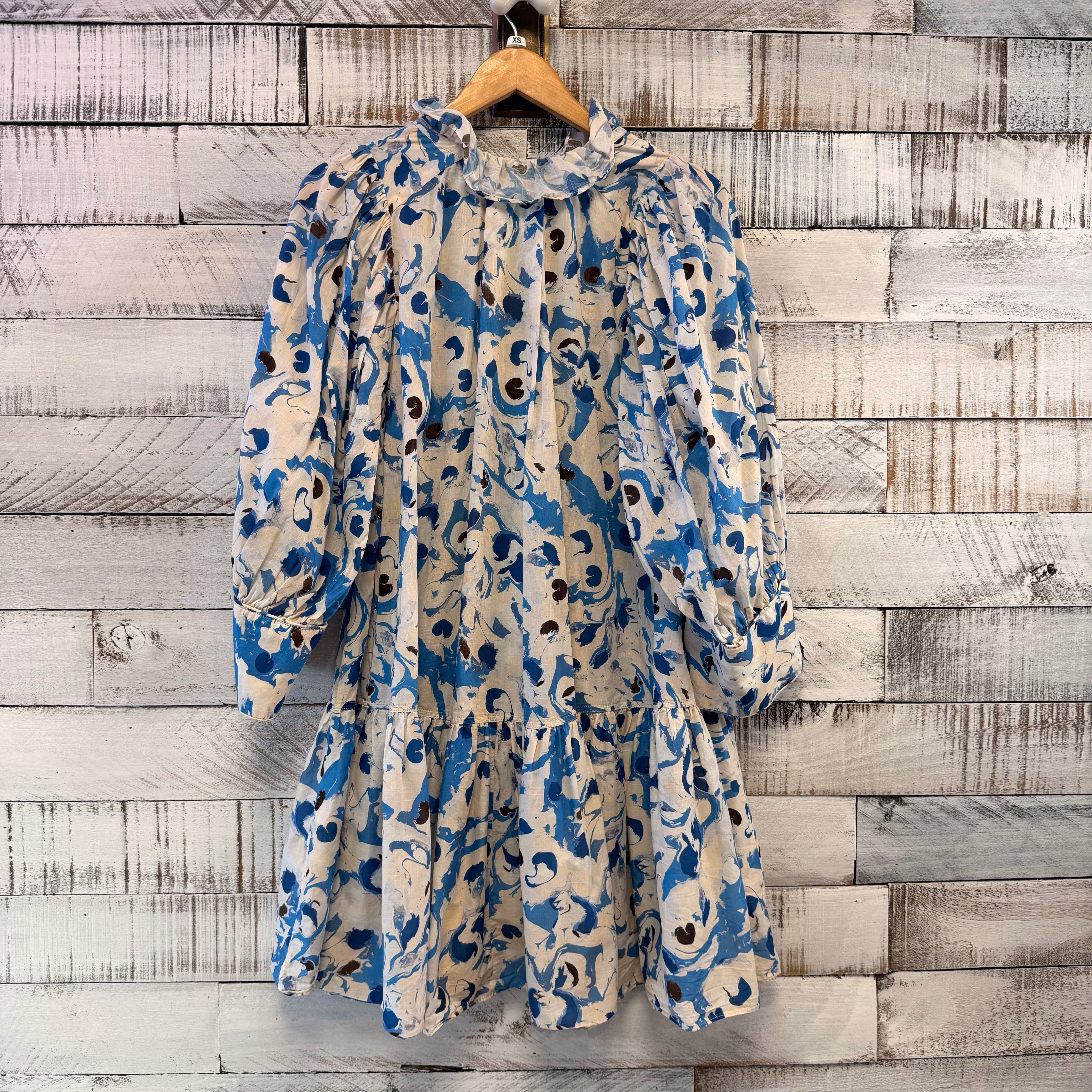 ruffle collar watercolor blue print