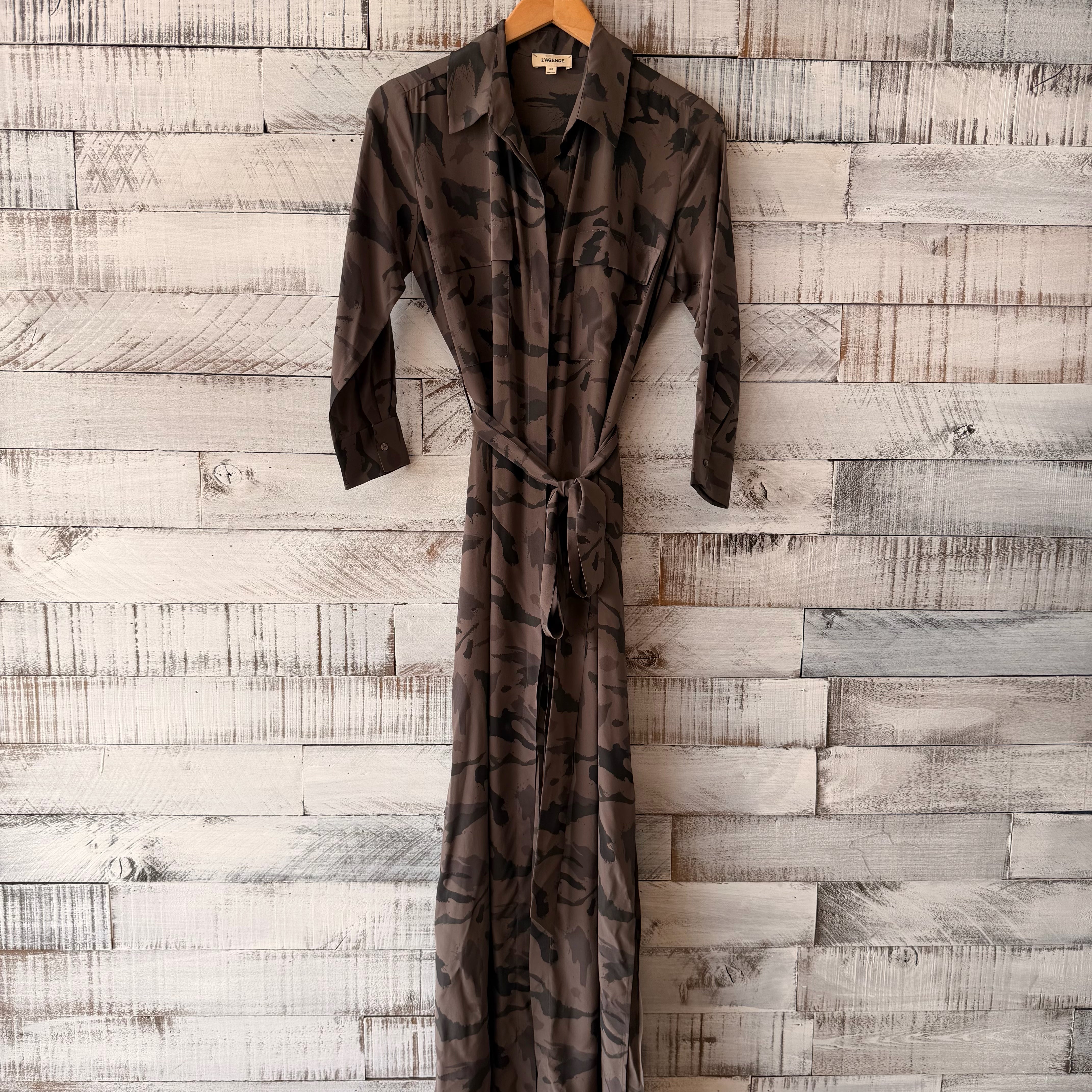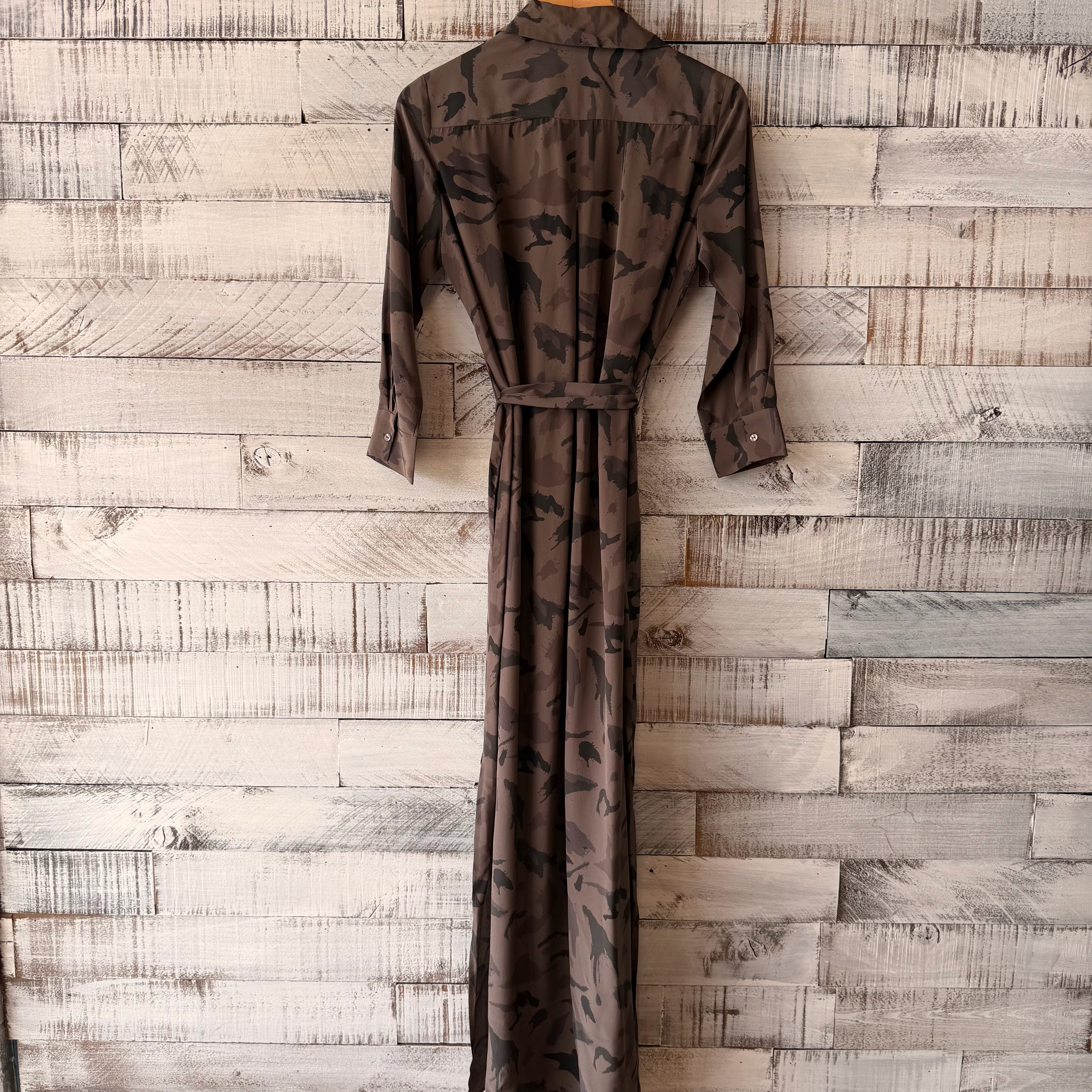 camo long sleeve belted maxi