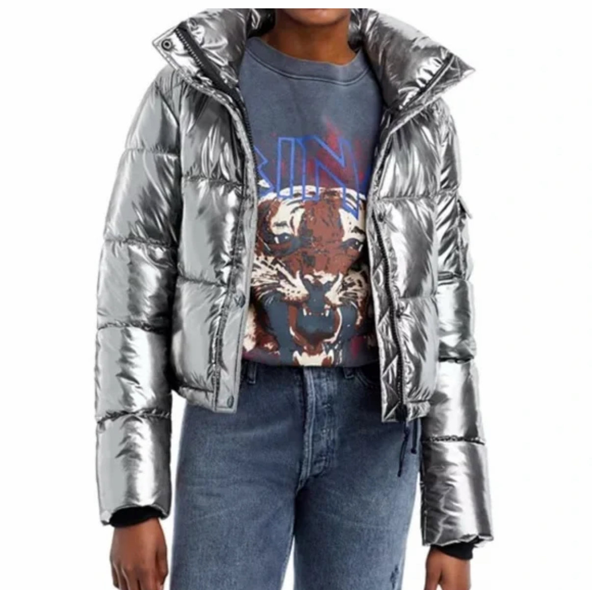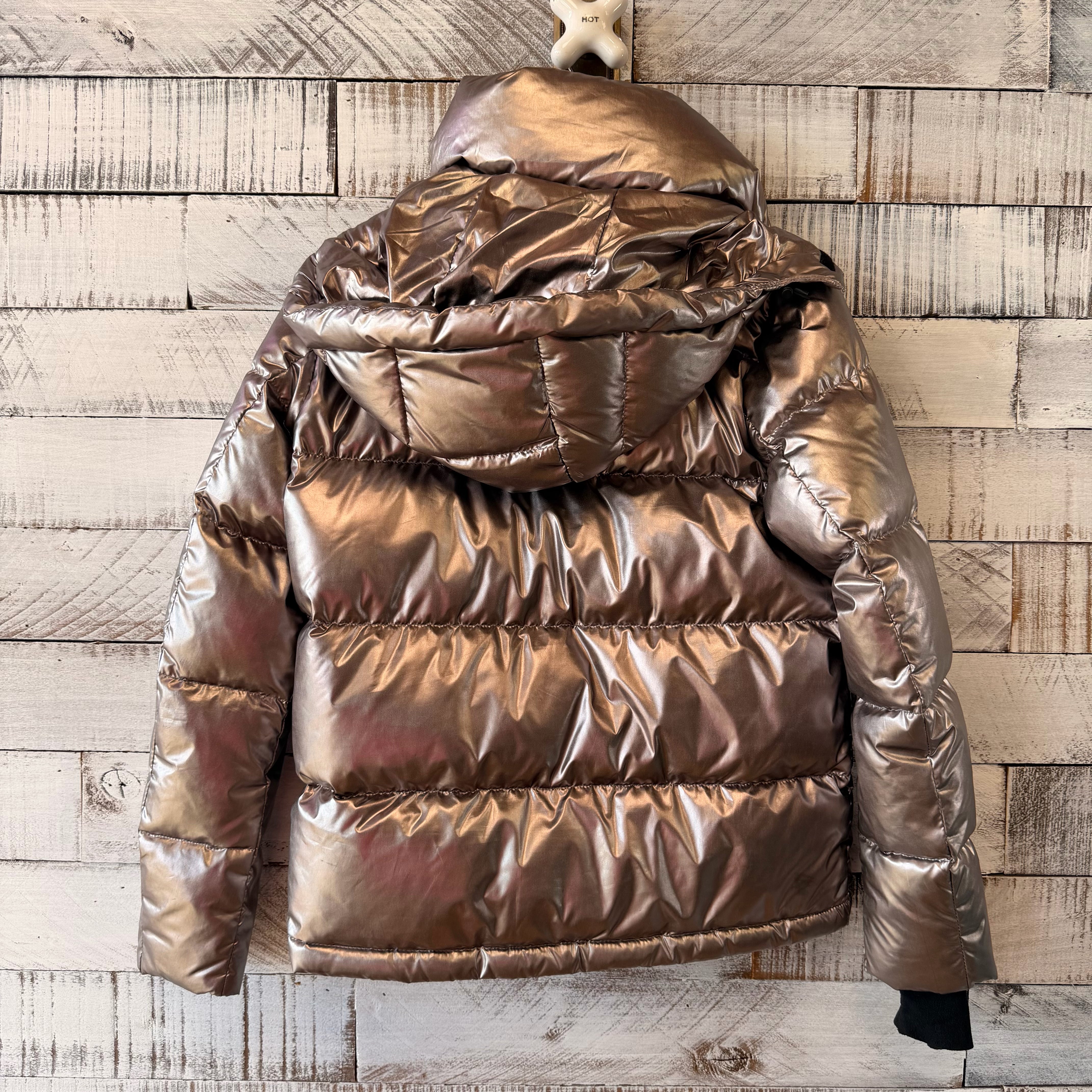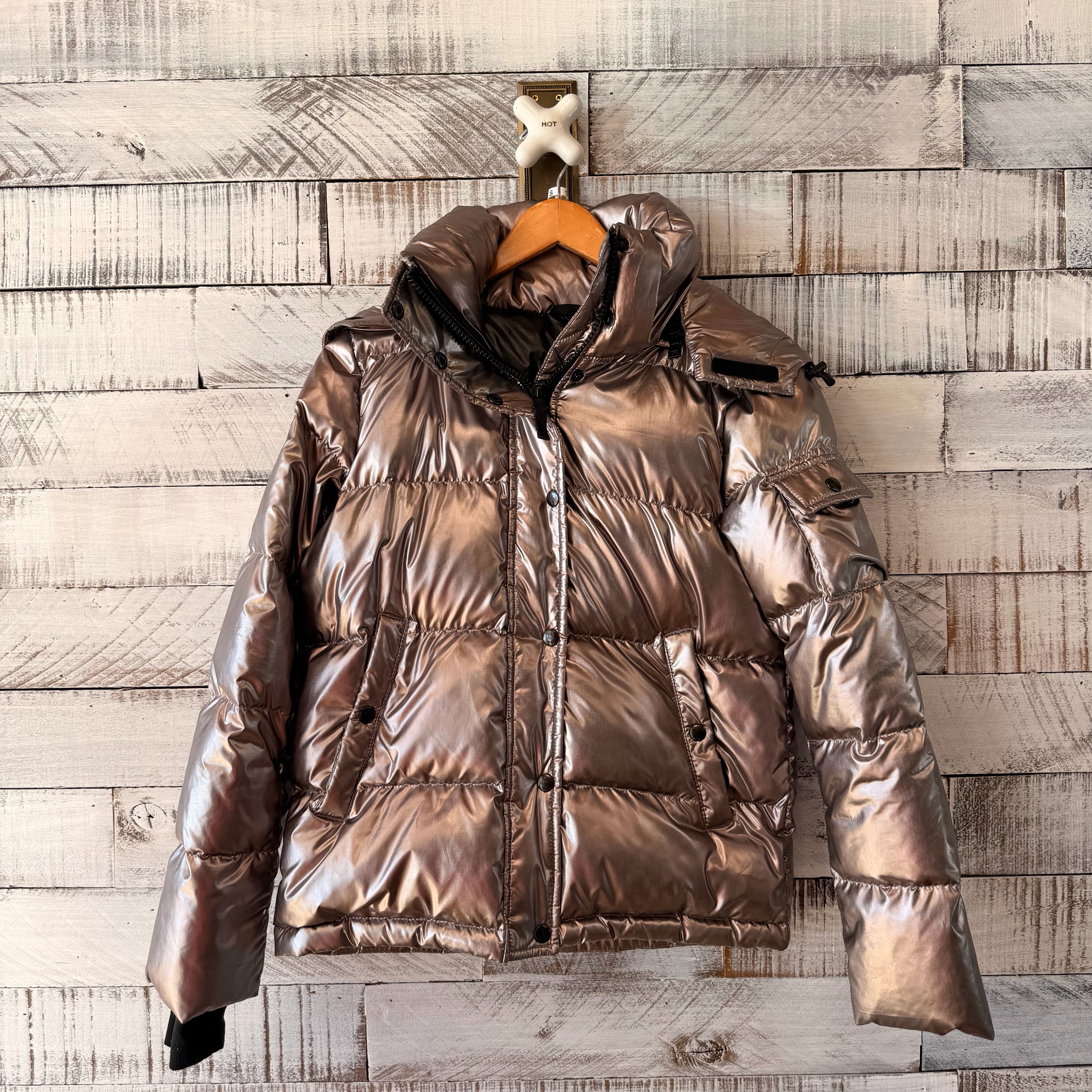 Metalic short coat, detachable zip off/on hood