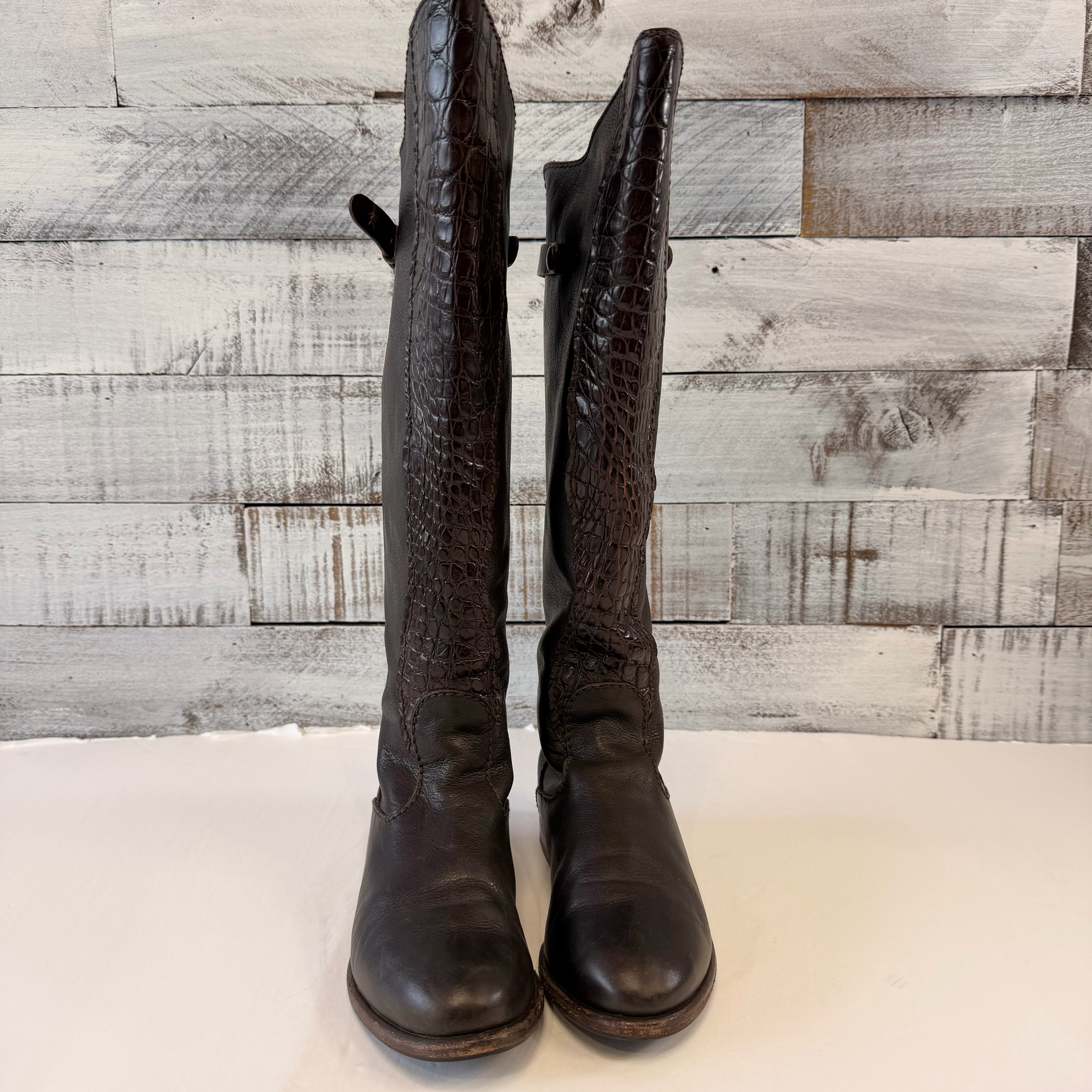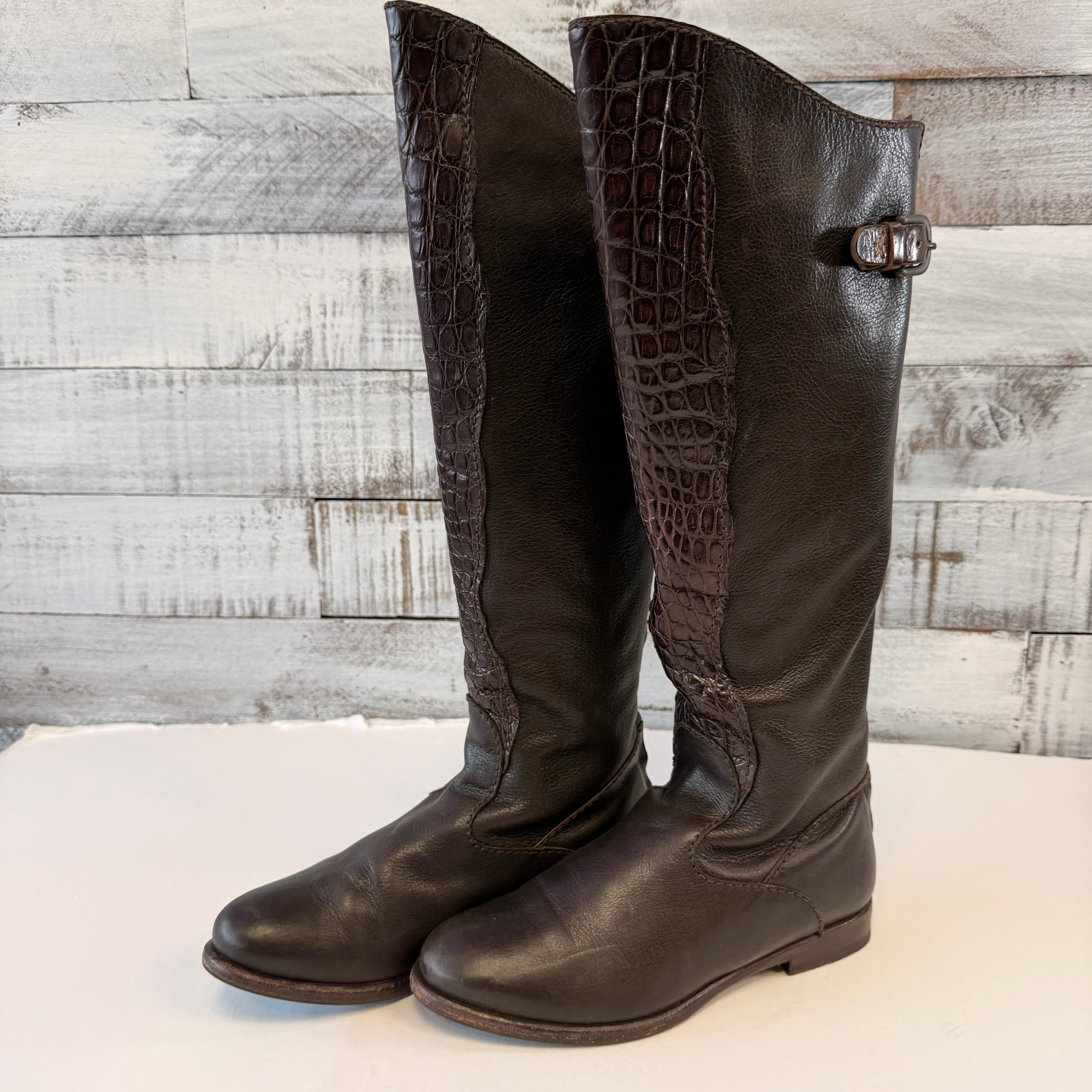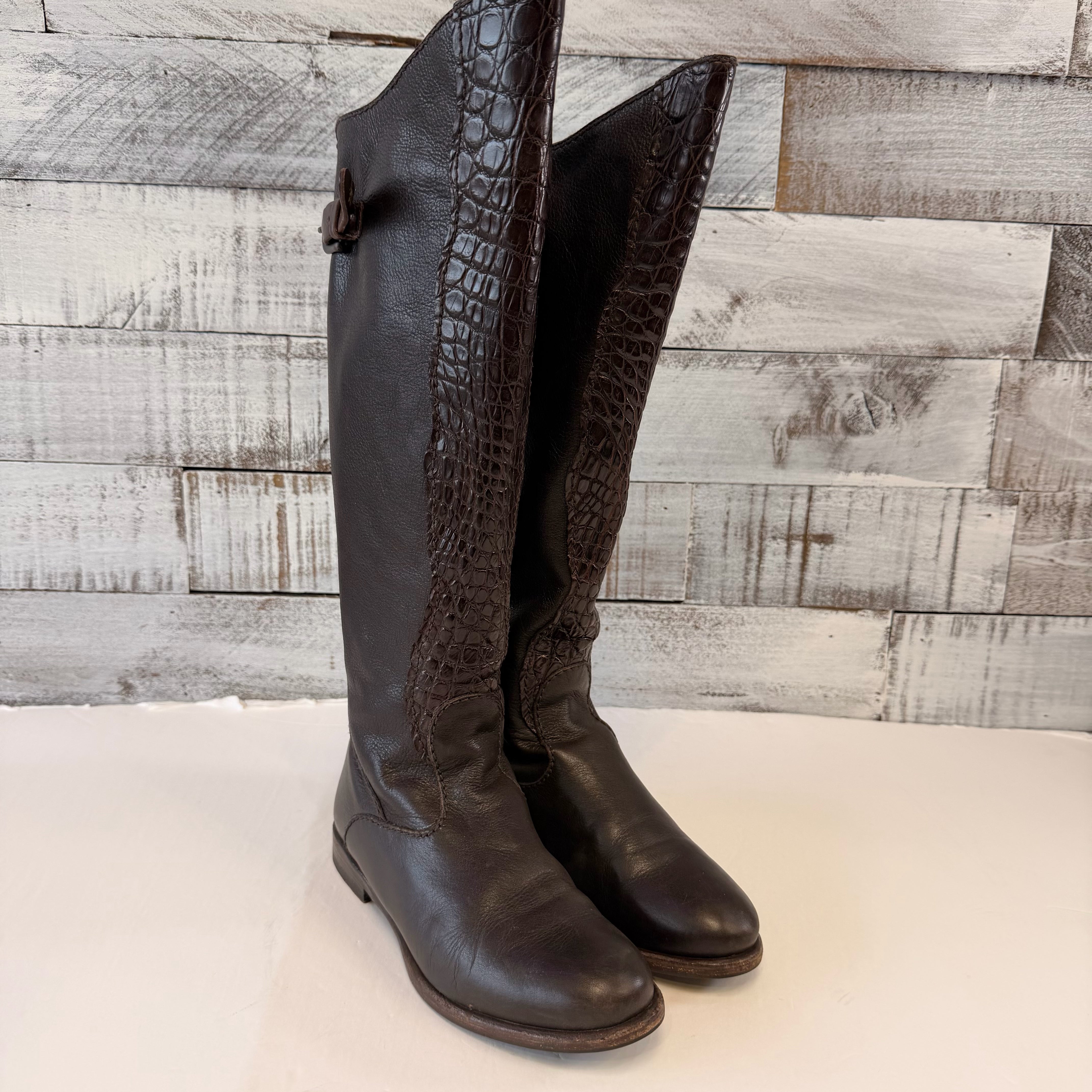 croc detail on front, flat boots, - BOX
