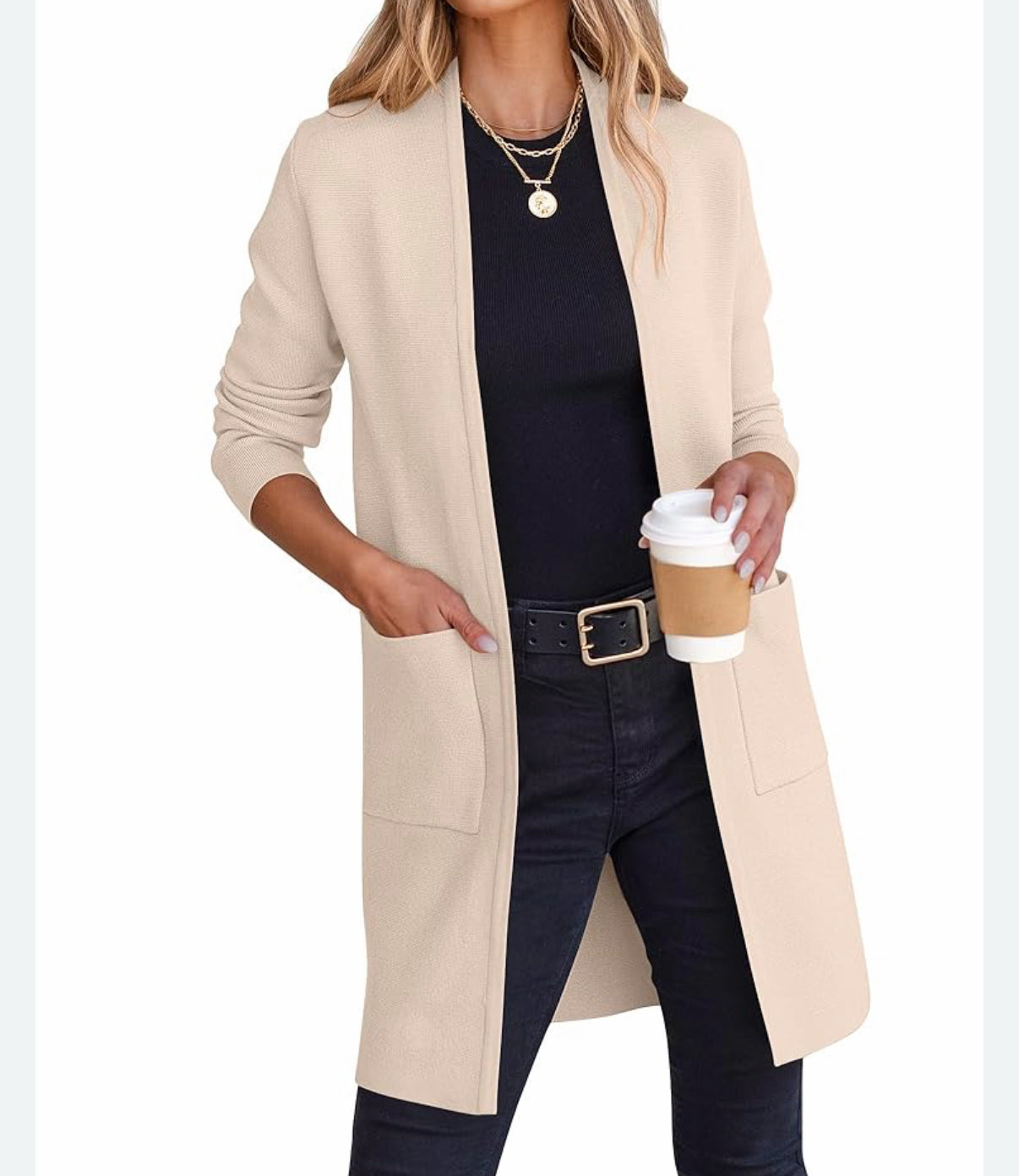mid long, open, pockets