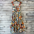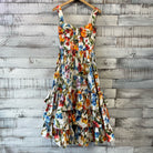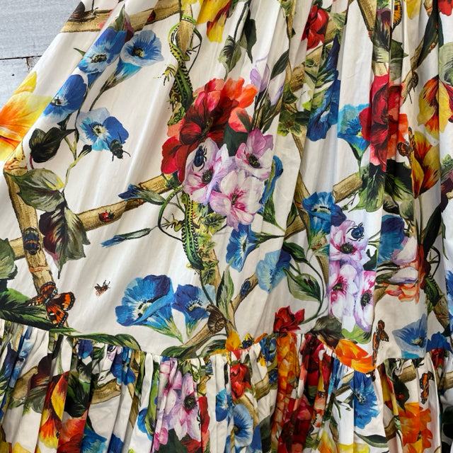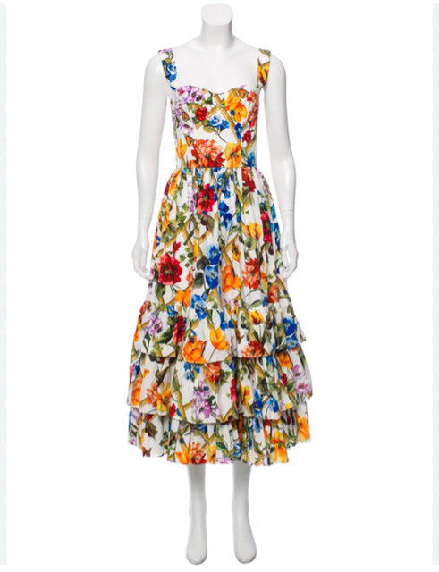 2018 Bamboo Dress, climbing flowers, wide straps, zipper back, tiered ruffles