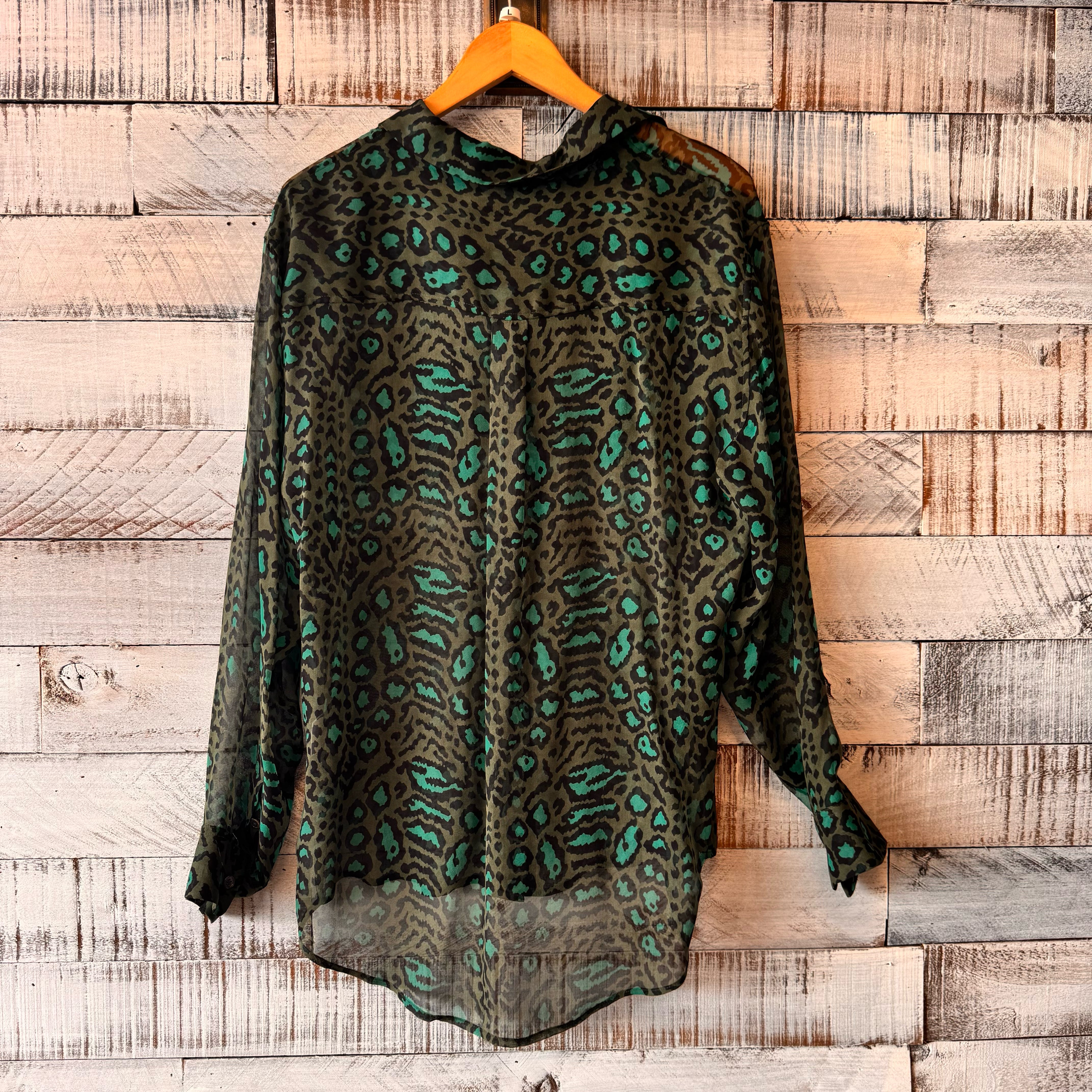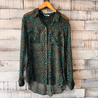 button up in dark olive, teal and black