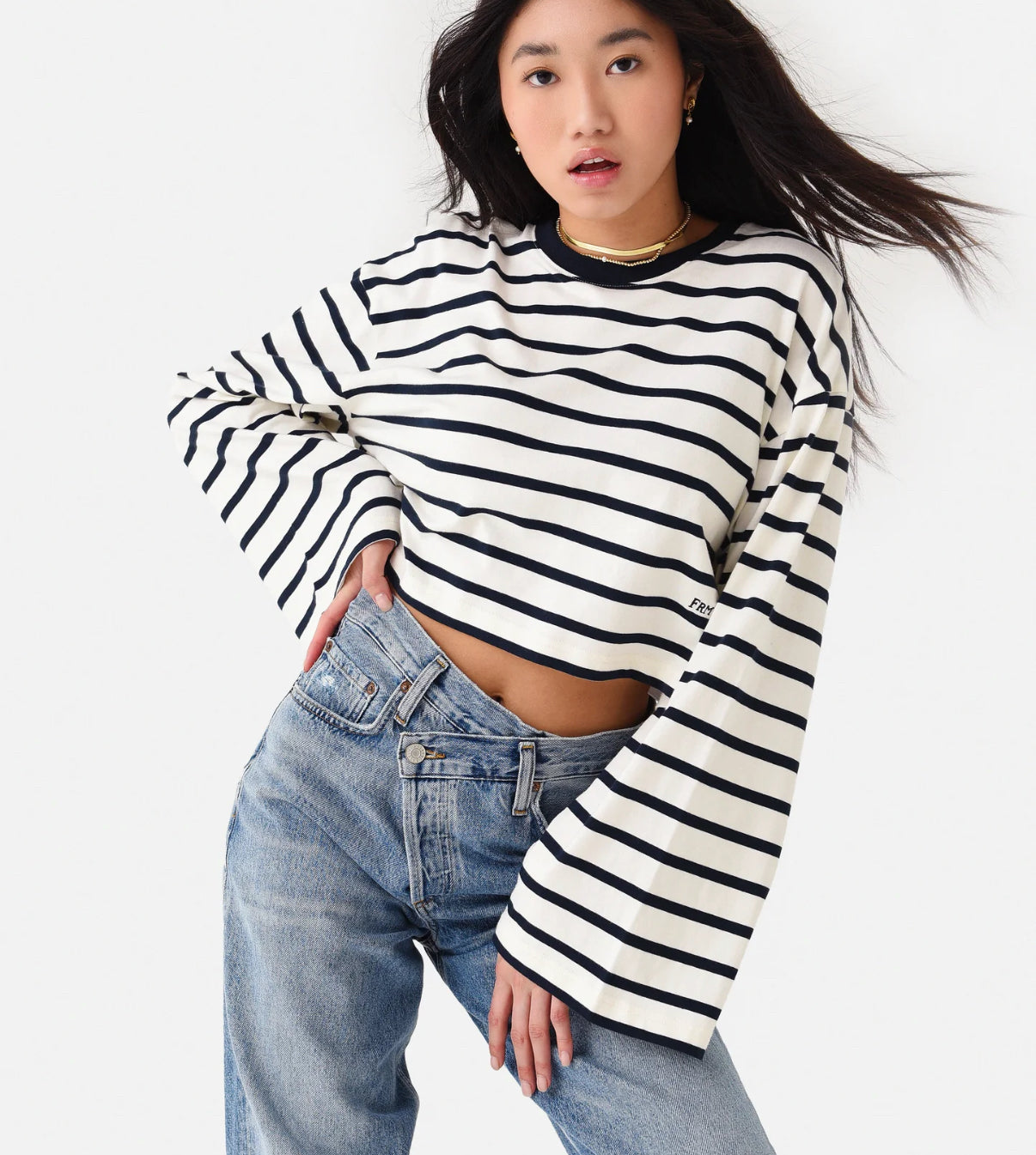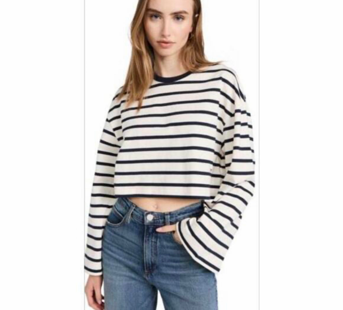 bell sleeved striped cropped t shirt