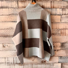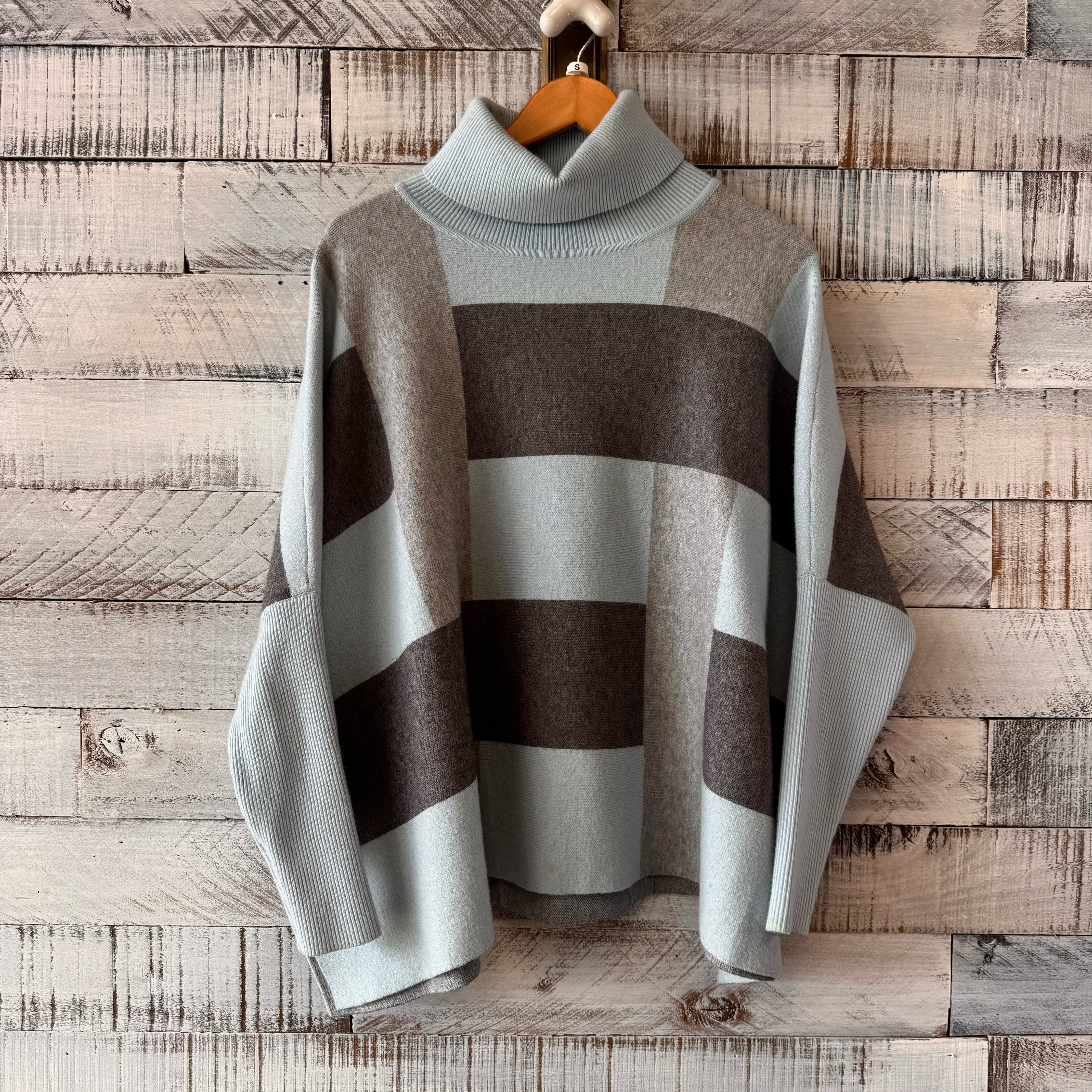 color block in black and blue, turtle neck, wide cut