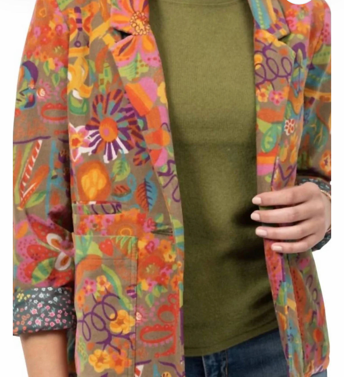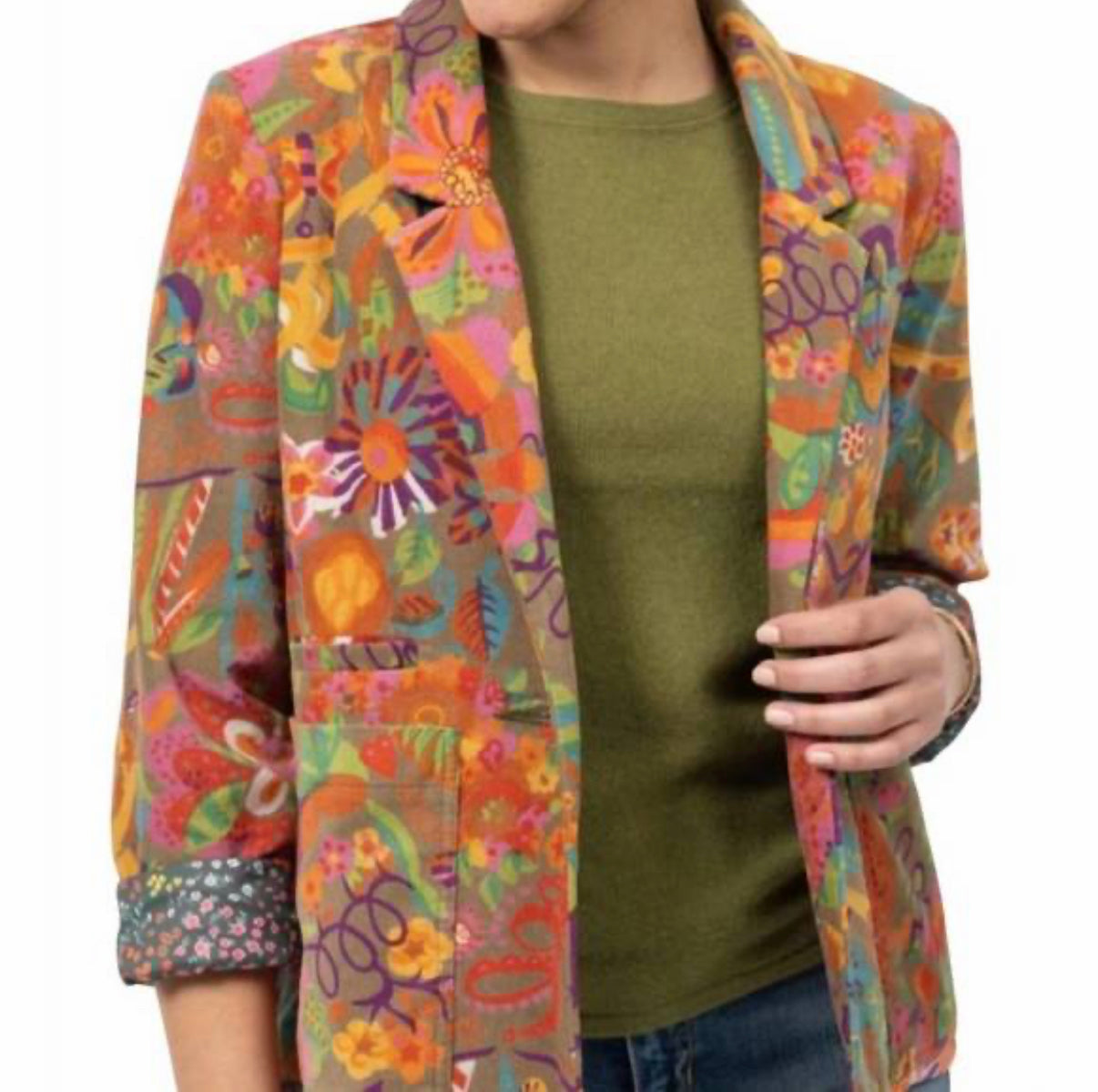 olive, orange, purple, green floral