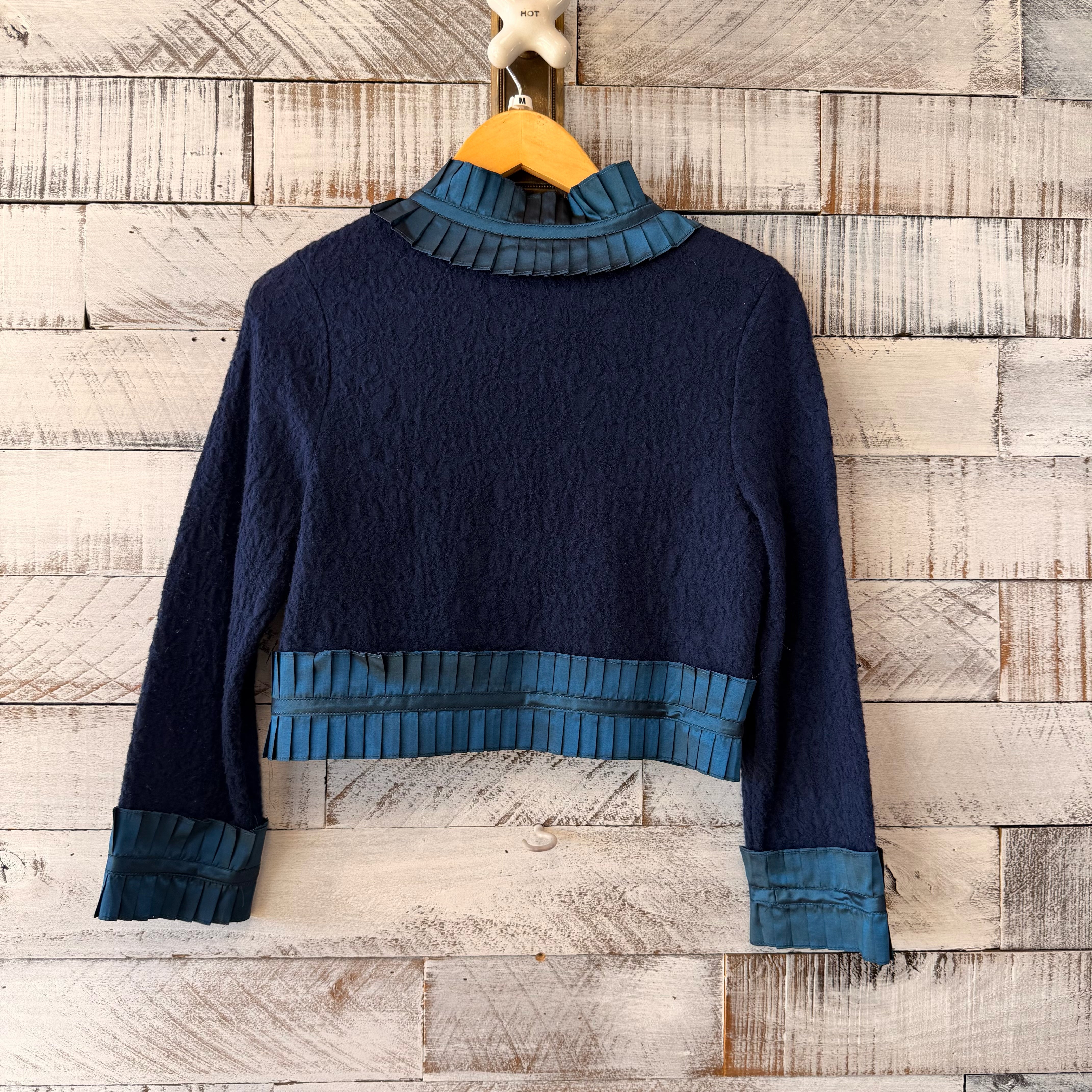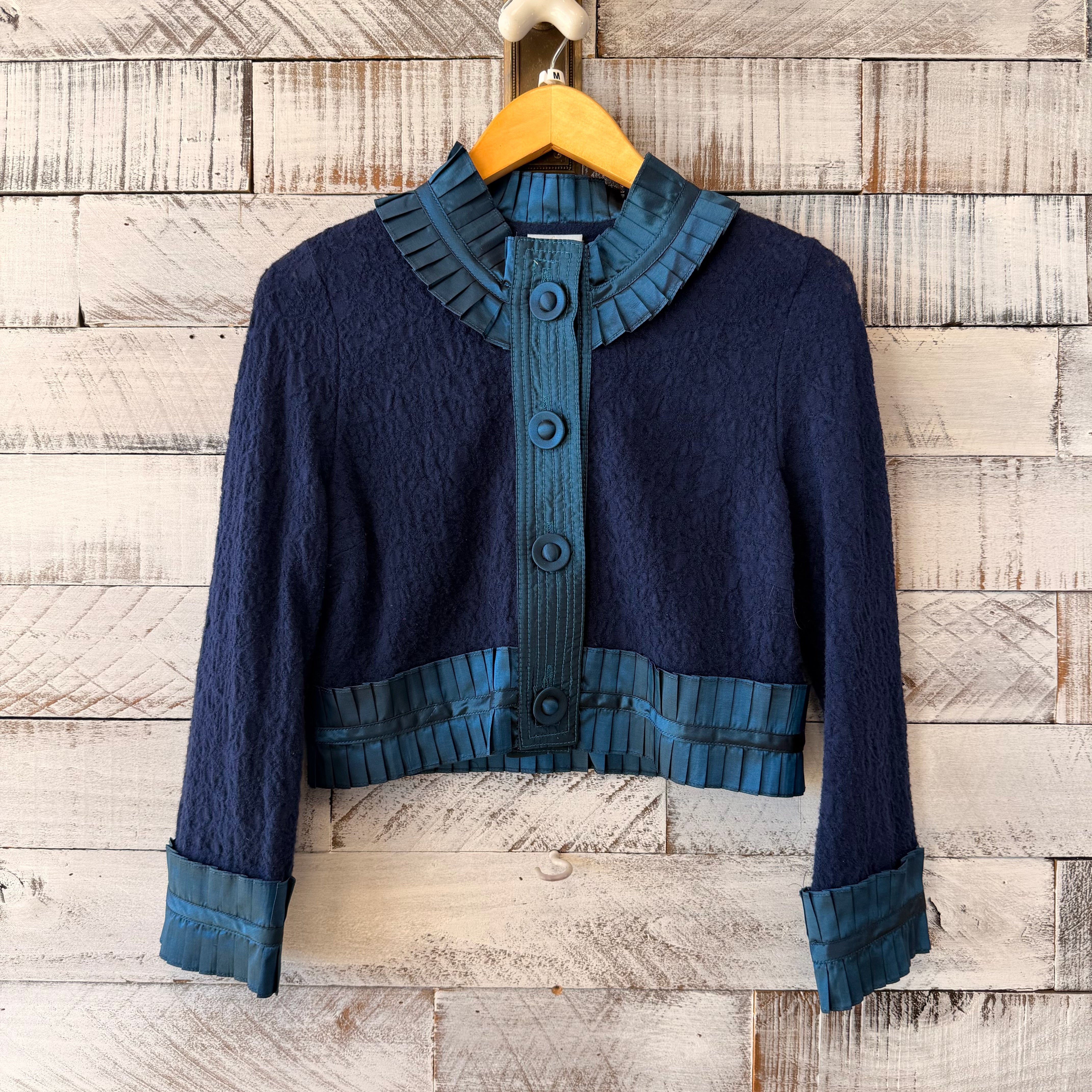 1990s cropped with pleated trim, large buttons